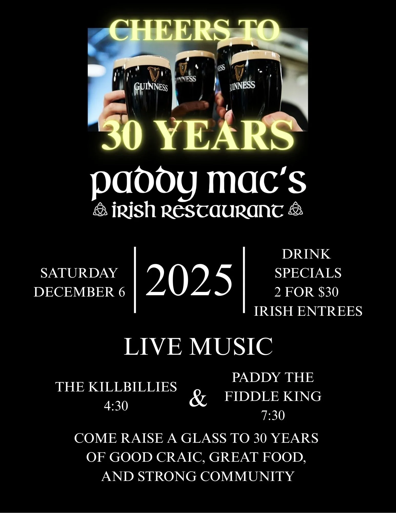 Welcome to Paddy Mac’s Irish Restaurant! Step inside to feel the warmth from all of our staff,