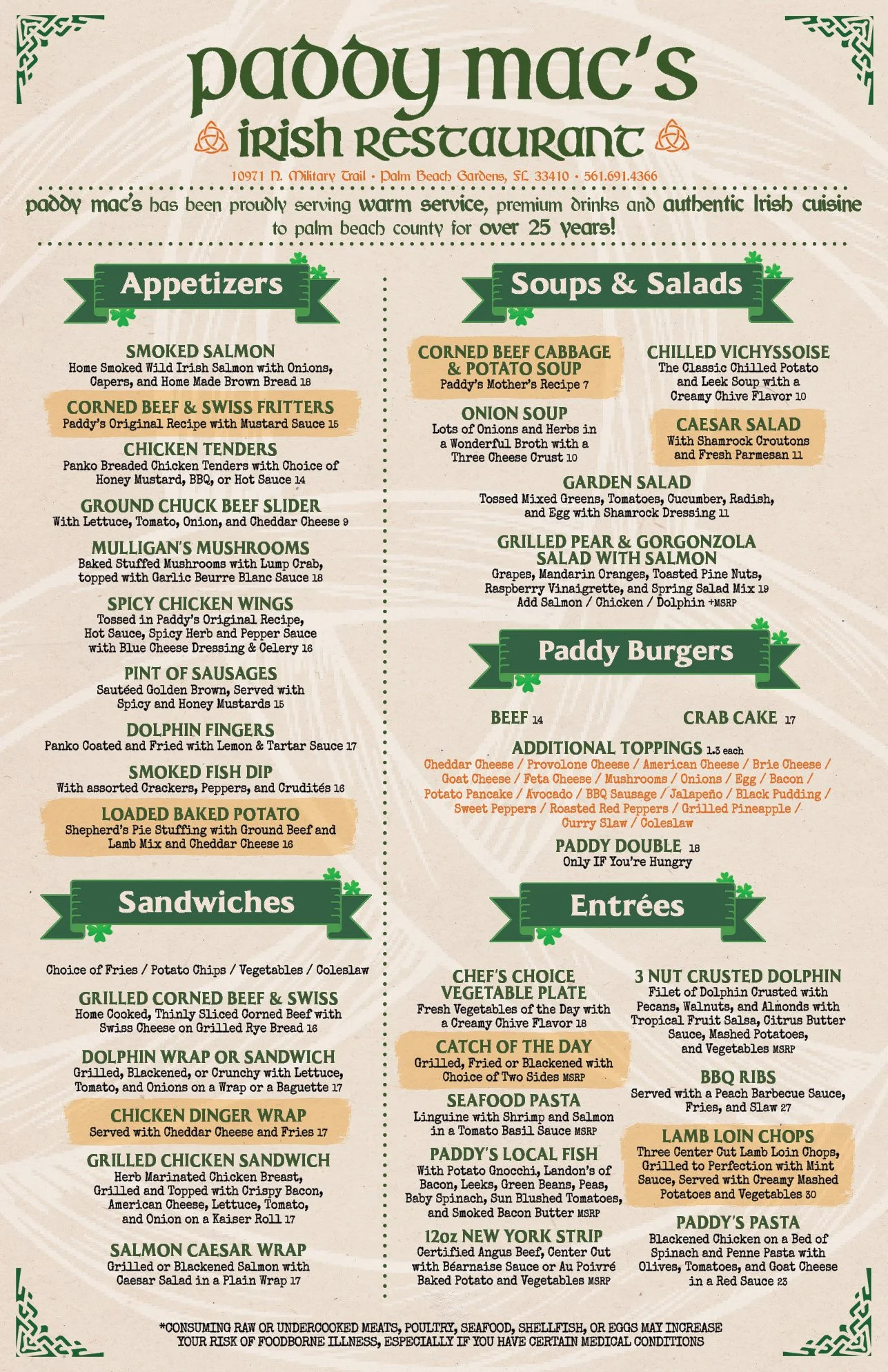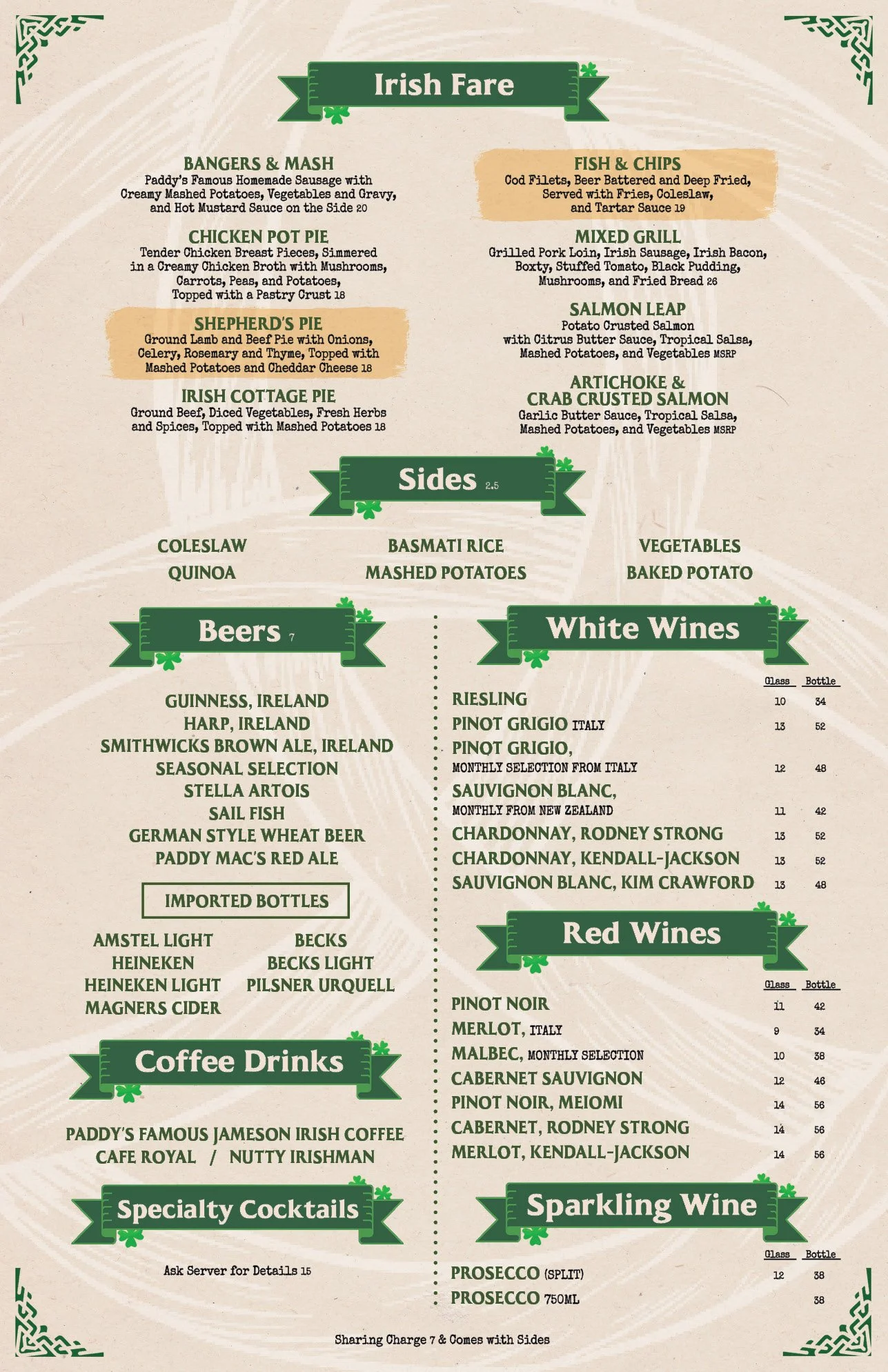 Paddy's Lunch Menu